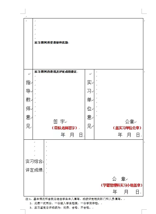 实习鉴定表填写说明