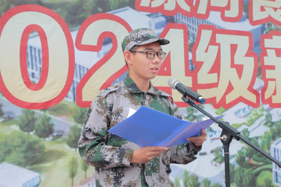 9月12 日上午,漯河食品工程职业大学举行2024 级新生军训开训仪式。操场上,身着崭新军训服的新生们精神抖擞,队列整齐,满怀期待地迎接即将到来的军训生活。学校领导王操志、俞海洛、程东阳等出席仪式,军训教官、二级学院负责人及全体新生参加开训仪式。仪式由校领导冯建业主持。