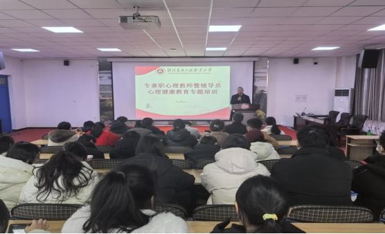 为提升学校心理健康教育专兼职教师和辅导员的专业素质,推进我校心理健康教育工作的高质量发展,为学生心理健康筑牢防线。2024年12月28日,学校心理健康领导小组办公室(学生处)、心理健康教育中心在我校B楼演播厅举办心理健康教育专题培训活动,全校44名专兼职心理健康教育教师和辅导员参加了培训。
