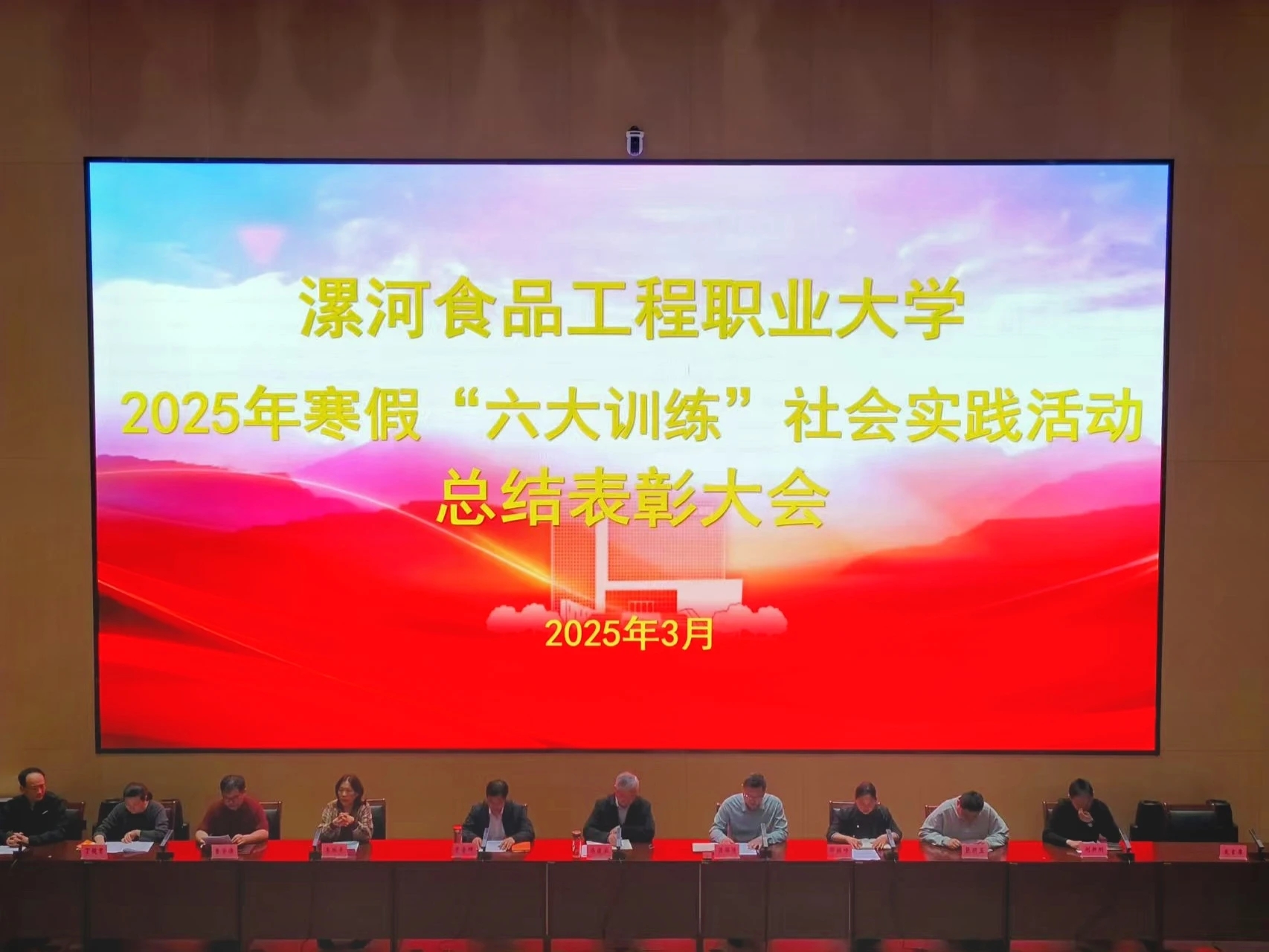 为深入贯彻落实党的二十大、二十届三中全会和全国全省教育大会精神,深化“实践育人”综合改革,培养高素质技术技能型人才。2025年寒假期间,校团委、学生处联合组织开展了“六大训练”社会实践活动,活动分为六个活动项目小组,有1200多名学生利用返乡度假时间,就近就便参加了以“六个双百”为主要内容的“六大训练”社会实践活动。为了进一步巩固和扩大社会实践活动的成果,发挥先进典型的示范激励作用,交流和推广活动中的先进经验,推动我校社会实践活动深入持久地开展,我校于2025年3月26日下午在图书信息中心第一学术报告厅召开了2025年寒假“六大训练”社会实践活动总结表彰大会。 学校副校长冯建业,校团委副书记于金辉、学生处处长侯保清、副处长邵换峥,各院(部)党支部书记出席本次大会。参加会议的还有各院(部)团总支书记及校团委、学生处全体老师。大会由学生处处长侯保清主持。