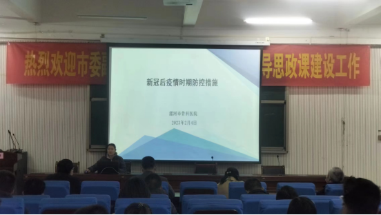 为了做好校园“健康驿站”的运行管理工作,提高全体管理服务人员的业务素质,2月4日下午,学校邀请定点医院(漯河市第五人民医院)社会工作部主任韩书环、感控办主任楚巧红两位专家来校做了《后疫情时代的防控工作》的专题报告,并对学校健康驿站全体保障人员和医务人员进行了培训和用药指导。