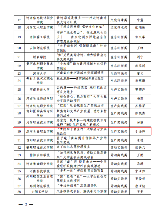 3月1日,河南省教育厅办公室印发了《关于公布第六届河南省“出彩中原”大学生社会实践活动立项项目名单的通知》(教办学〔2023〕58 号),我院申报的“食院学子百企行”大学生社会实践活动项目、“食院创客在行动”大学生社会实践活动项目获批立项。全省共有110 项大学生社会实践活动项目获得立项。