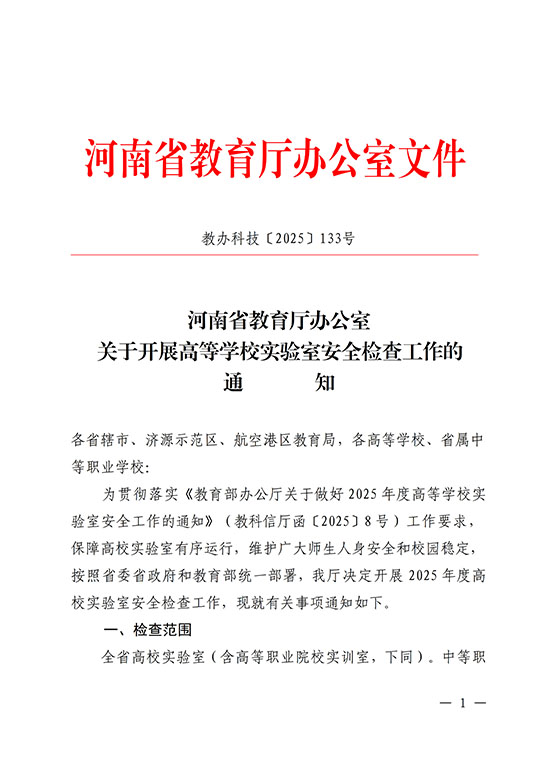 - 2025.05.19转发河南省教育厅办公室关于开展高等学校实验室安全检查工作的通知