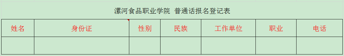 普通话水平测试报名表(Excel电子表格)到漯河食品职业学校网站-实训中心-下载
