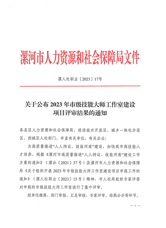 我校又获批2023年市级技能大师工作室建设项目一项