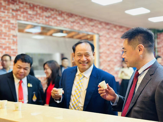 2023年9月4日下午,泰国坦亚武里皇家理工大学校长颂迈一行来到漯河食品职业学院访问交流,并参加合作协议签署仪式。漯河食品职业学院党委副书记、创办人詹跃勇,学院执行董事长王百木,副院长樊振江,董事长助理、国际教育学院院长詹清华出席签约仪式,招生处处长胡成勇,信息工程系主任王黎等参与签约活动。仪式由王百木主持。