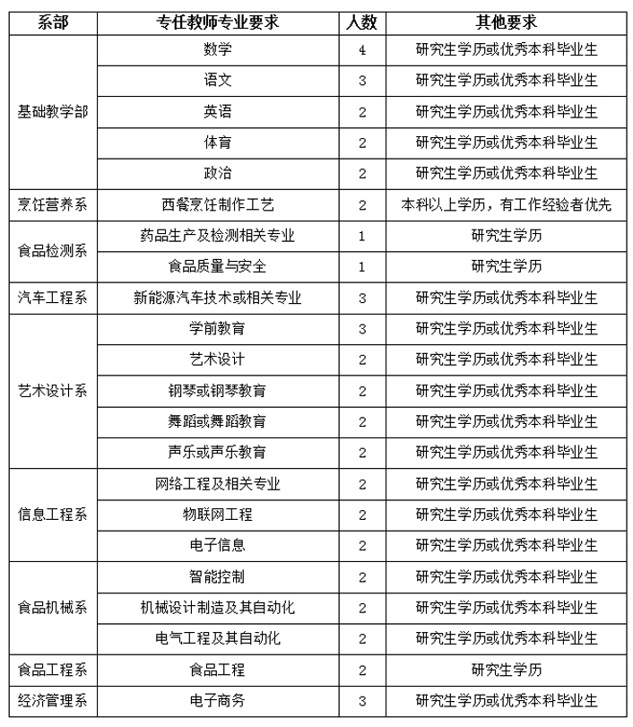 (三)本、硕专业一致或相近,具有高校教师资格证、中级以上教育系列职称和中级职业技能资格证书的优先录用。