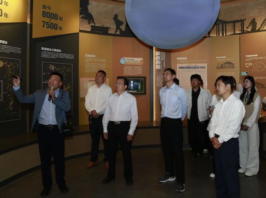 告别舞阳县青年救国会旧址后,师生们又一起先后参观了舞阳农民画院和漯河食品工程职业大学思政教育基地——贾湖遗址博物馆。舞阳农民画院展示的一幅幅农民画以其鲜艳的色彩、夸张的构图和质朴的造型,展现出浓郁的乡土气息,描绘着农民群众的生活百态与美好憧憬。贾湖遗址博物馆展览出土的贾湖古笛、酿酒遗存及契刻符号,犹如璀璨星辰,照亮了中华民族悠久的历史长河,彰显着祖先非凡的智慧与创造力。同学们在工作人员的讲解下,近距离感受了民间艺术的魅力,惊叹于贾湖文化的悠久历史和深厚底蕴,深刻感受到了中华文明的源远流长和博大精深。