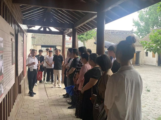 首先参观的是郾城区裴城村。在这个国家级传统村落,仍然保留着很多古建筑,承载着厚重的历史文化和红色故事。裴城村走出一位开国少将苏进。他1925年参加西北军,1931年参加宁都起义。土地革命战争时期,任中国工农红军第五军团十五军一二七团团长,四十四师师长,红一军团随营学校总队长,红军学校主任教员,红军大学参谋科科长,特种学校训练处主任,庆阳步兵学校训练部部长,参加了两万五千里长征。抗日战争时期,任陕甘宁边区警备司令部参谋长,八路军一二零师三五九旅副旅长。解放战争时期,任东北民主联军铁道司令部司令员,铁路护路军司令员,炮兵纵队司令员,第四野战军特种兵副司令员。新中国成立后,任中国人民解放军炮兵副司令员。在导游的讲解下,我们感受到革命斗争的艰难不易和革命先烈为中华民族探寻真理和追求光明的坚定信念。了解了中国共产党员在革命战争年代顽强拼搏的革命历程。