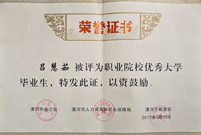 2019/01/01关于表彰我系“市级优秀大学生”吕慧茹同学的通知