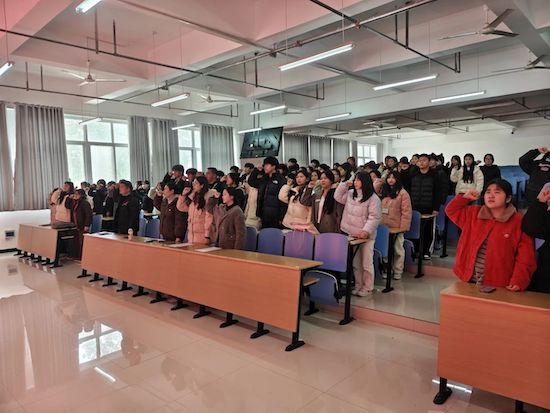 在条例学习结束后,学生代表侯立慈带领全体团员庄严宣誓:“坚决拥护党的领导,严守团的纪律,履行团员义务,争做新时代优秀团员。”铿锵有力的誓言彰显了大家严守纪律、勇担责任的坚定信念。