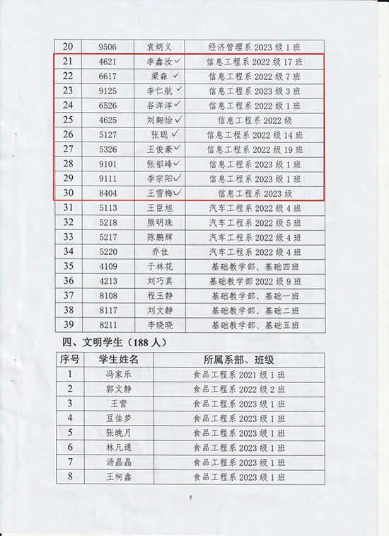时序更迭,春华秋实。伴随着时光匆匆的脚步,承载着勤奋耕耘的喜悦。为表彰优秀,树立榜样,营造浓厚的学习氛围,进一步调动同学们的学习主动性和积极性,信息工程系开展了文明学生评选活动。让我们一起见证他们的风采,感受榜样的力量!