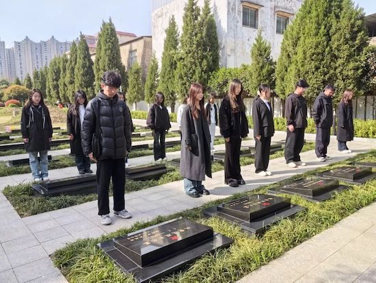 踏入陵园,肃穆庄严的氛围扑面而来。同学们先后瞻仰了陵园东区与西区,一排排整齐的墓碑,宛如烈士们依然坚守岗位,守护着这片土地。每一座墓碑背后,都镌刻着一段可歌可泣的英雄故事,诉说着革命先烈为国家独立、民族解放,不惜抛头颅、洒热血的伟大精神。同学们缓步慢行,认真擦拭墓碑上的文字,仔细阅读碑文,以最质朴的方式向这些为国家和人民英勇献身的烈士们致以崇高敬意。