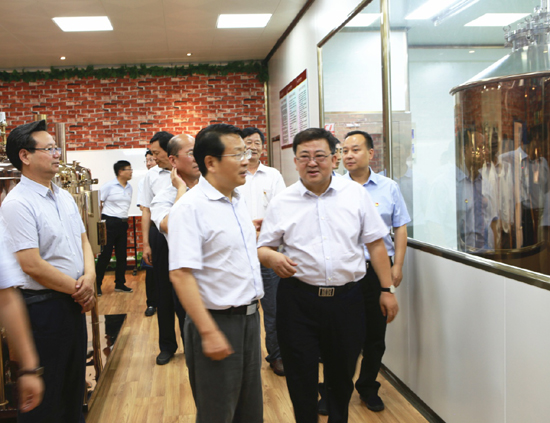 6月11日上午,漯河市委书记蒿慧杰、常务副市长高喜东、市委秘书长李建涛及漯河市编办、发改委、教育局、人社局、财政局相关领导一行到漯河食品职业学院调研指导工作,漯河食品职业学院董事长詹耀轩、院长李五聚、副院长高愿军、院长助理、实训中心主任樊振江陪同调研。