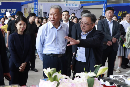 启动仪式结束后,与会领导、嘉宾一同参观了我省职业教育成果展示。各参展单位通过展板、专业技能展示、技能展演等形式,展示学校专业特色、教学成果等特色项目,吸引众多观众驻足观看。