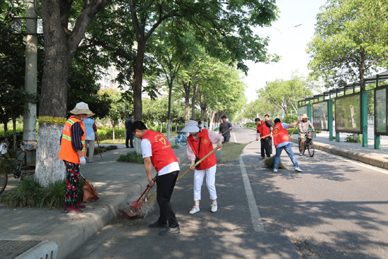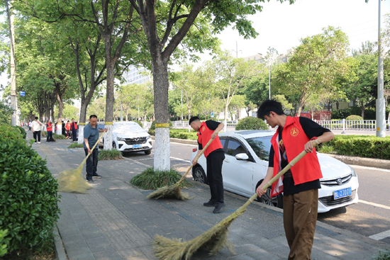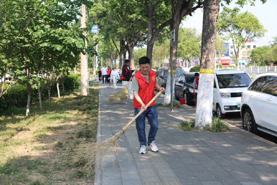 为进一步提升城市形象,为第二十一届中国(漯河)食品博览会的成功举办创造良好的城市环境,5月10日下午,漯河食品职业学院的部分教师和沙澧雷锋营的同学们,在学院副院长冯建业的带领下,到郾城区淞江路与白云山路交叉口分包路段,积极投身到“大排查、大清扫、大保洁、大冲洗”城市清洁行动中。