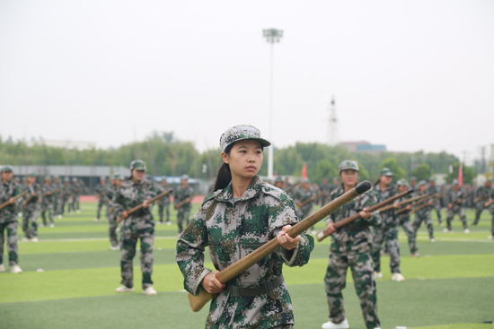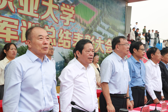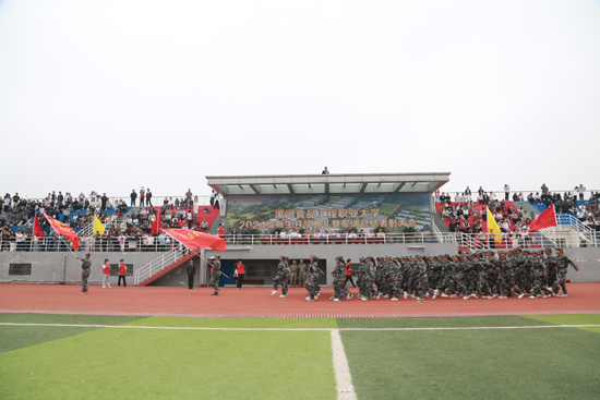 军训总结表彰环节,各方队迈着整齐的步伐,喊着嘹亮的口号依次走过主席台,展示着他们在军训中的飒爽英姿和坚韧不拔的精神风貌。学校领导对在军训中表现突出的4个先进组织单位、22个先进班集体和430个先进个人进行了表彰,颁发了荣誉证书和奖品,以激励同学们继续发扬在军训中培养的优良品质。