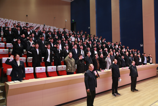 最后,学校党委书记王操志作了重要讲话,他指出,这是一个令人高兴的日子,同时也是一个令人终生难忘的时刻;这是每个新党员政治生涯中的一件喜事,更是我校党内政治生活中的一件大事。入党宣誓是一项庄严而神圣的仪式。这不仅仅是一个简单的仪式,更是对党的信仰、对人民的忠诚、对事业的担当的庄重承诺。成为一名中国共产党党员就意味着今天是你们政治生命的起点,要听党话、跟党走,全心全意为人民服务;意谓着你们已是有信仰有理想的人;意谓着你们的使命更加崇高、更加光荣、更加神圣;意谓着对你们的要求更高更严。同时,他又对新党员提出了三点希望:一是希望新党员坚定信念,时刻牢记使命。不仅在组织上入党,更要在思想上入党;要拥护“两个确立”、增强“四个意识”、坚定“四个自信”、做到“两个维护”,以一名优秀党员的标准来严格要求自己,时时处处发挥好党员的先锋模范作用,始终保持共产党员的先进性。二是希望新党员自觉接受党组织的教育、管理和监督。首先要学习《党章》,了解预备党员的权利和义务,树立党员意识,牢记初心,勇担使命,刻苦学习,锐意进取,不断提升对党忠诚的政治品质;其次要学习《中国共产党纪律处分条例》,了解党的纪律,严格遵守党的纪律,履行党员义务,在党组织和党内外群众的监督下,自觉从思想上、行动上与党保持高度一致,巩固组织上的团结和统一,提高党的凝聚力和战斗力。三是希望新党员不断加强学习、努力实践,为党增辉。在新的历史时期,作为一名共产党员,要顾大局、讲奉献,努力学习现代科学知识,立足本职、埋头苦干、在各行各业中争当本职工作的行家里手,努力创造一流的工作业绩,为党旗增辉。尤其是学生党员,正值学习知识技能的大好年华,应倍加珍惜千金难买的青春时光,心无旁鹜,勤奋学习,刻苦钻研,积极参加实训实习,争做学习上的表率、技能上的高手!