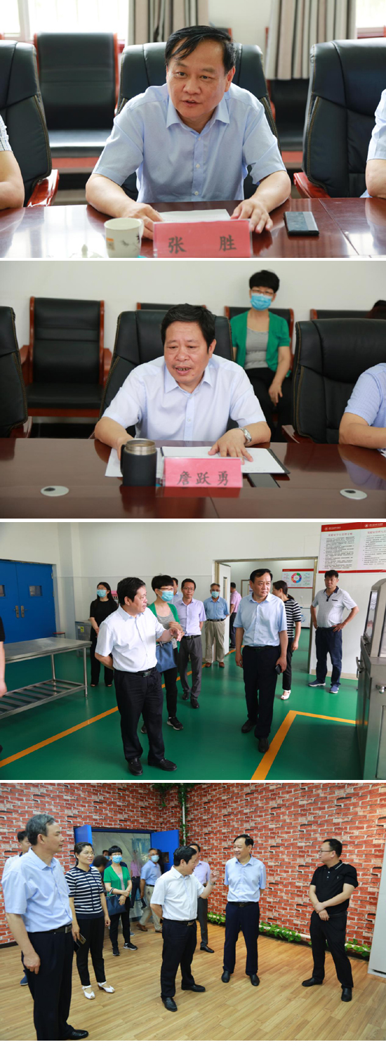 7月1日上午,驻马店职业技术学院院长张胜、副院长刘道广、教务处长石全珍、招生就业处处长孙钰、机电工程系系主任张亚军、机电工程系书记张焕俊、质管办主任曹留成、办公室副主任成峥一行到我院交流座谈,我院党委书记詹跃勇、副院长樊振江及相关部门及系部负责人陪同参观我院焙烤生产线、乳制品生产线、纯水生产线、肉品加工生产线、啤酒生产线及大匠烘焙学院、中标检测学院并进行交流座谈。