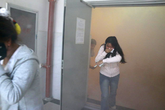 随着基建处消防专干三声哨响与“三楼着火了”的警示呼喊,演练正式拉开帷幕。学生公寓楼6号楼、9号楼三楼模拟突发火情,浓烟迅速蔓延。正在宿舍休息或自修的学生闻警而动,立即关闭电源电器,在每层2名志愿者与班干部的引导下,有条不紊地开展自救逃生行动。着火房间学生依据火势灵活应对,火势较小时迅速切断电源,使用灭火器扑灭初起火灾;火势较大时,则果断撤离,沿着消防指示灯方向向安全出口疏散。一、二楼学生迅速有序撤离至9号公寓楼前小广场集合,三至六楼学生关闭门窗,用浸湿的床单、抹布等物品堵塞缝隙,阻挡烟雾侵入,静待救援信号。待模拟明火扑灭、烟雾散去的两声哨响后,三至六楼学生也依序撤离,整个过程紧张有序、配合默契。