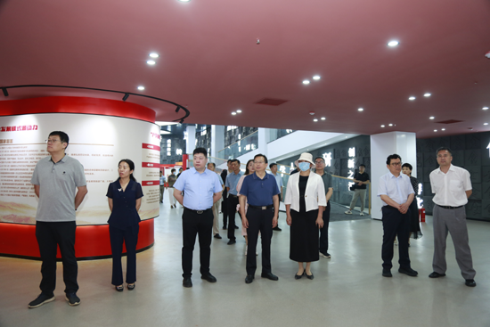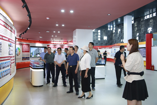 焦红艳一行先后到图书信息中心“产学研转创”融合发展特色展厅、大学生孵化器参观视察。