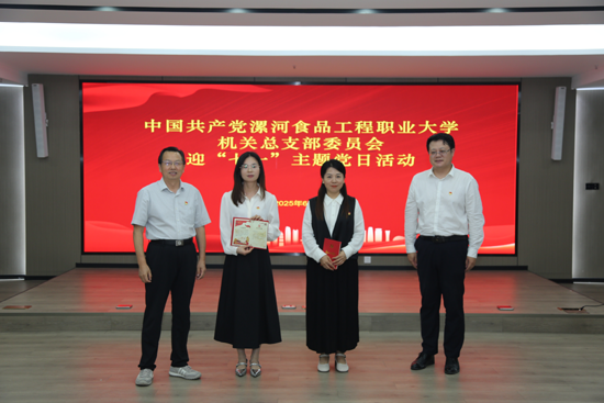为庆祝中国共产党成立104周年,深化党支部标准化规范化建设,提升党员荣誉感、责任感和使命感,选树先进典型,深化作风建设,凝聚发展力量,6月30日下午,中国共产党漯河食品工程职业大学机关总支部委员会开展迎“七一”主题党日活动。校党委书记王操志出席。
