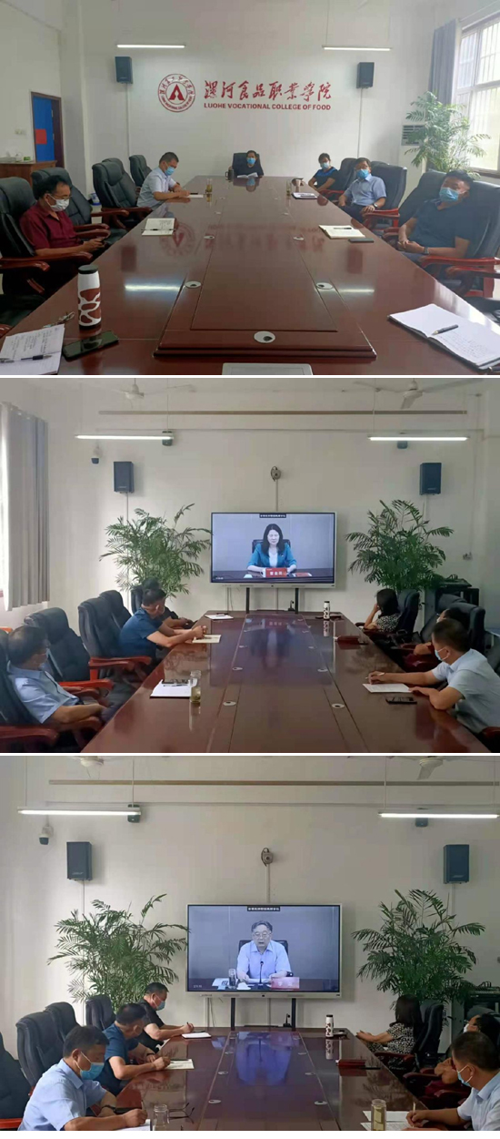 8月19日上午,全省教育系统疫情防控暨开学准备工作视频会议在郑州召开。我院在新校区视频会议分会场集中收看大会视频直播。学院党委副书记、创办人詹跃勇,党委副书记、副院长张爱琴等学院领导班子成员出席会议,学生处、教务处、后勤处、保卫处、办公室、各系部等相关部门负责人及学院疫情防控各工作专班相关人员参加会议。会议由省政府副秘书长尹洪斌主持。