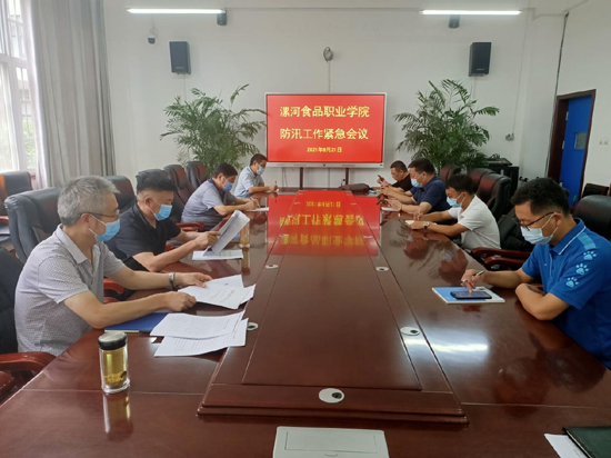 会议传达了《省教育厅落实防汛II级应急响应实施方案》和《漯河食品职业学院防汛应急预案》的有关要求,强调,一是要提高认识,高度重视,各责任部门及各单位要按要求认真做好落实,确保师生生命及财产安全。二是要加强值班值守,学院值班人员做好值班及巡查,做好应急准备,发现汛情及时报告和启动应急预案。三是分组提前进行细致排查,对学院办公室、教室、实训室、宿舍、餐厅、围墙等进行认真排查,发现问题及时整改。