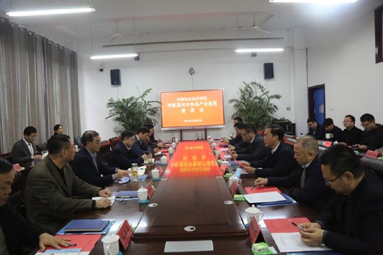 10月20日下午,河南牧业经济学院校长罗士喜一行11人到我院调研交流座谈,市科技局局长效国强、畜牧局局长段宏亮、学院董事长詹耀轩等陪同调研并参加座谈。