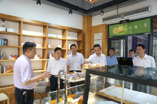 曹忠义一行首先参观了发酵饮料、乳制品、肉制品、啤酒酿造、焙烤食品等河南省食品加工中试基地生产线和学院图书信息中心“产、学、研、转、创”特色展厅。在听取相关介绍后,他对学院“产、学、研、转、创”融合发展办学模式赞不绝口。