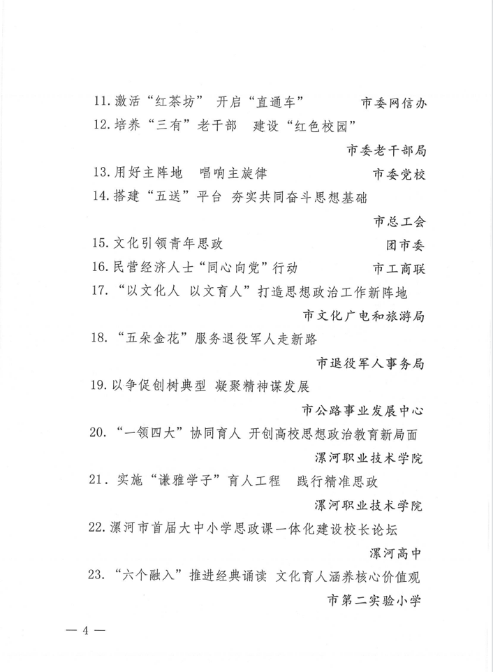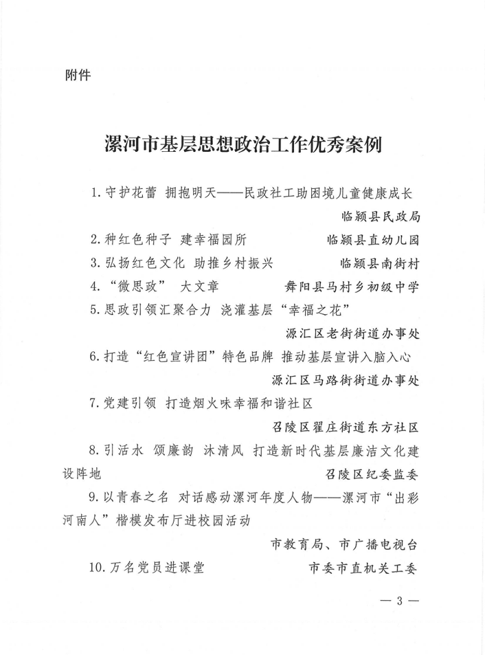 日前,中共漯河市委宣传部下发《关于表彰漯河市基层思想政治工作优秀案例的通报》(漯宣通[2023]22号)。其中,漯河食品职业学院选送的《唱响课前一支歌 舞动青春爱国情》获评漯河市基层思想政治工作优秀案例。