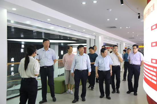 在“产学研转创”融合发展特色展厅,了解了学院特色模式的发展历程、成果、成效,他对学院党建引领、人才兴校、“产学研转创”特色办学模式、推广示范所取得的成绩表示赞赏和肯定。