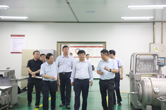在河南省食品加工中试基地,王海东参观了饮料、肉制品、啤酒酿造等中试生产线,品尝了烤肠、酸奶、啤酒等中试生产产品,他对中试基地所承担的科技成果转化服务所取得的成绩表示充分肯定。