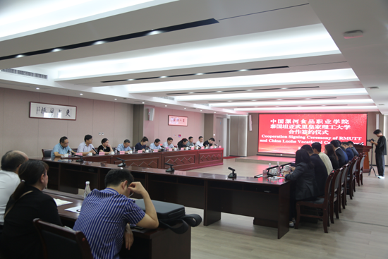 在签约现场,与会嘉宾首先观看了漯河食品职业学院宣传片和泰国坦亚武里皇家理工大学宣传片,进一步加深了相互之间的了解。