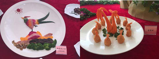 我校烹饪系的各位学子们也积极的参加了此次大赛,做出了非常多的美味佳肴,为我校争光夺彩,本次餐交会,不只是展商与采购商之间的交流,现场上百余出自豫菜名厨的美味佳肴,成排上桌,形成一道靓丽的风景线,现场来宾及观众争相拍照留念,并与名厨进行厨艺交谈学习。展台上各式各样的美食令人垂涎欲滴,各类厨师大展身手,做菜技艺炉火纯青,揭秘美食面纱。各参赛、参展单位充分展现郑州餐饮业独特魅力和风采。