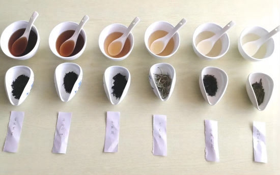 第二环节:识别茶汤,检测学生对六大茶类茶的内质茶汤的识别。