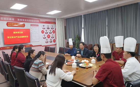 本次会议主要有两个目的,一是对本学期开学以来,各位教师实训授课情况的抽查,二是对学生技能学习情况的检验。此次会议没有提前通知任课教师,品鉴的作品都是当天有实训课的学生在课程上完成的,呈现的作品有西点蛋糕、中式蒸饺、手工包子、热菜狮子头。